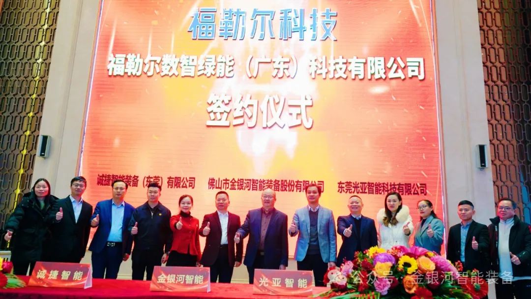 1月26日,福勒尔数智绿能(广东)科技有限公司成立签约仪式在佛山市金蝉天合新能源材料研究院隆重举行。三水区云东海街道党工委副书记、办事处主任邓颖娟、三水区云东海街道办事处副主任刘逸男、佛山市蝌蚪蜗精品视频在线观看智能装备股份有限公司董事长张启发、诚捷智能装备(东莞)有限公司董事长呙德红、东莞光亚智能科技有限公司董事长曾志永等领导和嘉宾亲临现场,共同见证这一辉煌起点。