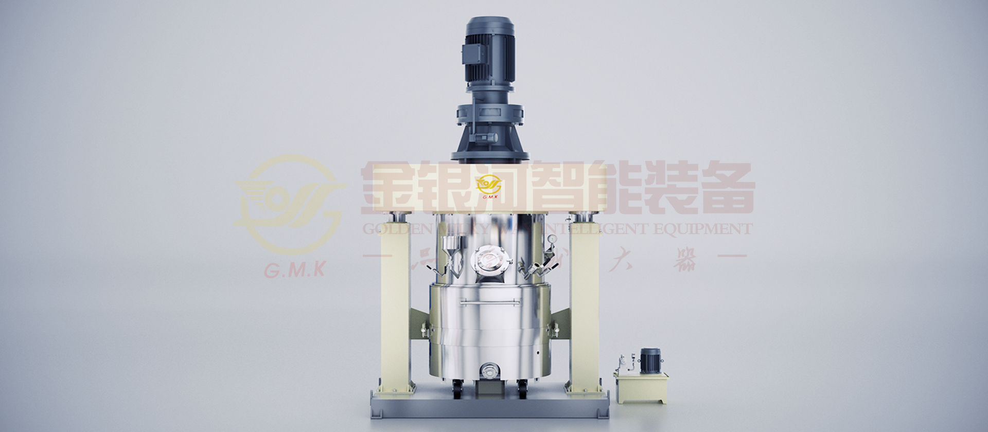 行星搅拌机是一种高效无死点混合搅拌设备,釜内有两根或三根搅拌桨,搅拌桨在绕釜体轴线公转的同时,又绕自身轴线高速自转,其速度可变频调速,使物料作复杂的运动,受到强力的剪切和混合,釜内设自动刮壁和刮底装置,将粘附在釜壁上的物料刮下,实现无死点、高效混合。该设备适用于食品、能源、粘胶、电子电器、氟硅、医药、化妆品、日化等行业生产。